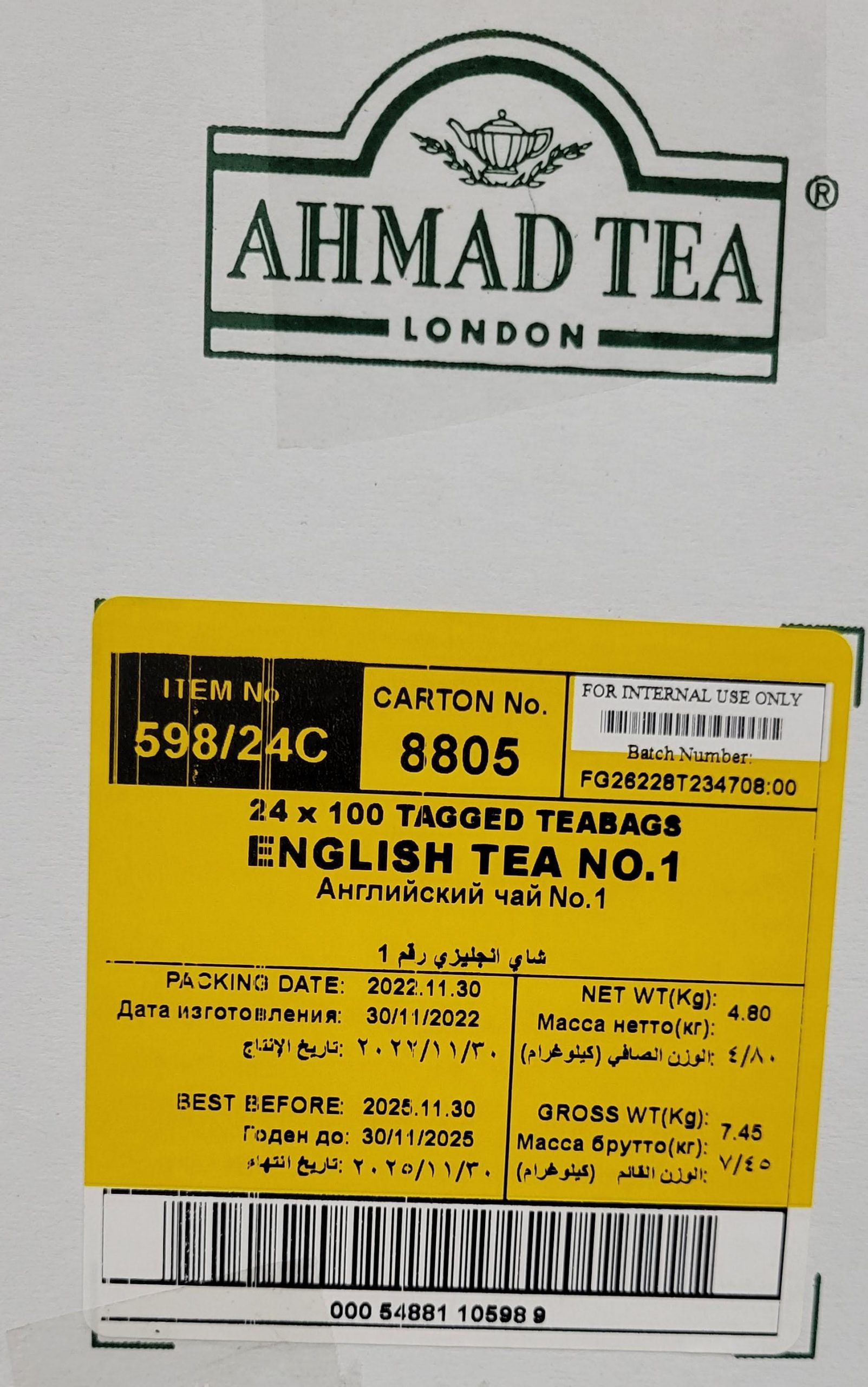 چای انگلیسی درجه 1 کیسه ای احمد 100 عددی، کارتن 24 تایی