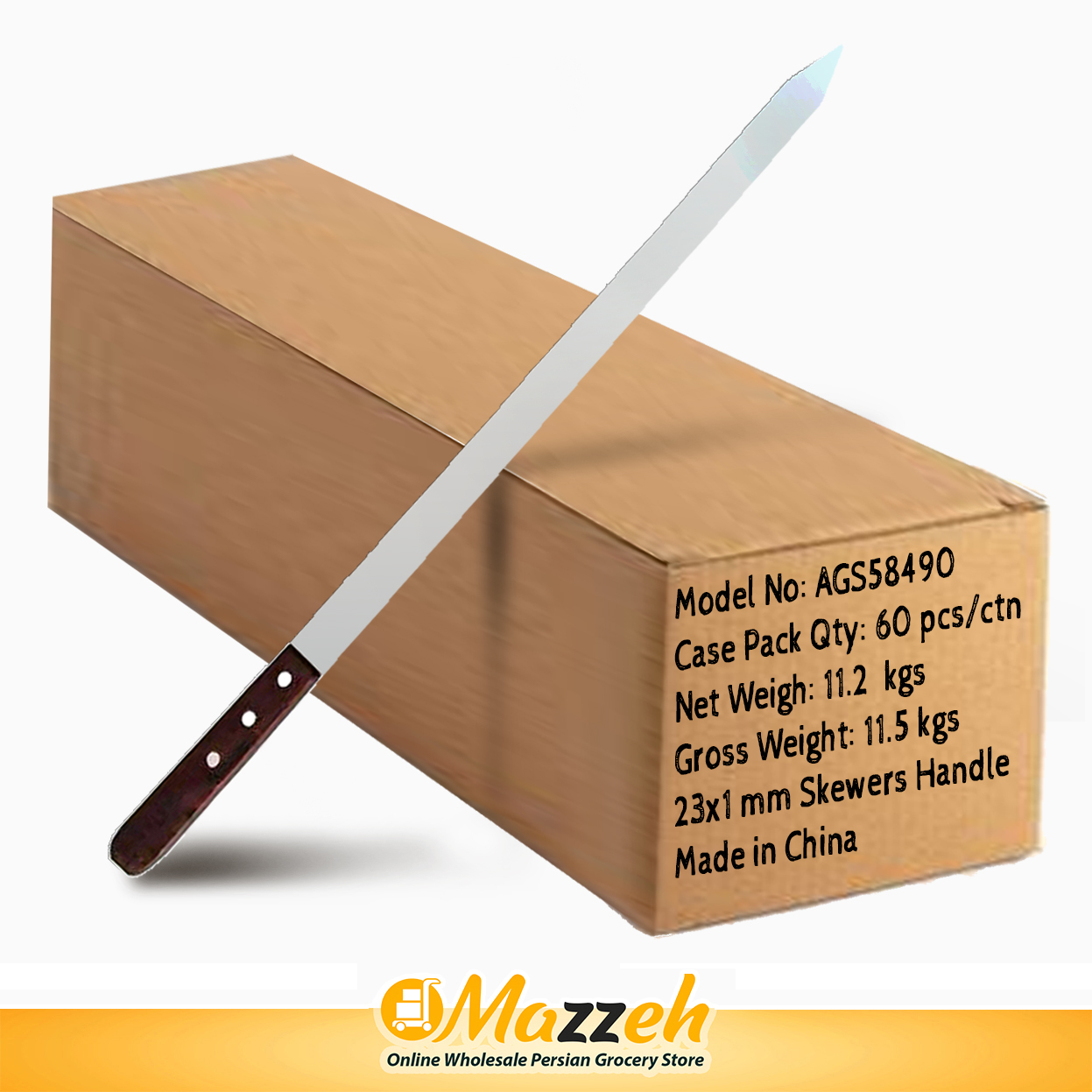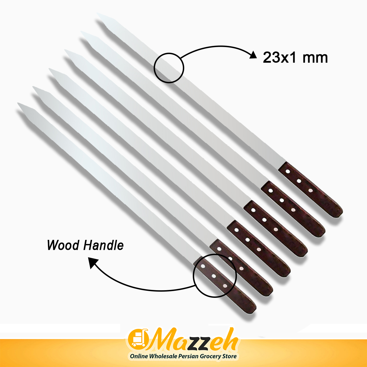 سیخ کباب تمام استیل دسته چوبی بی یونیک 23 در 1 اینچ- بسته 60 تایی