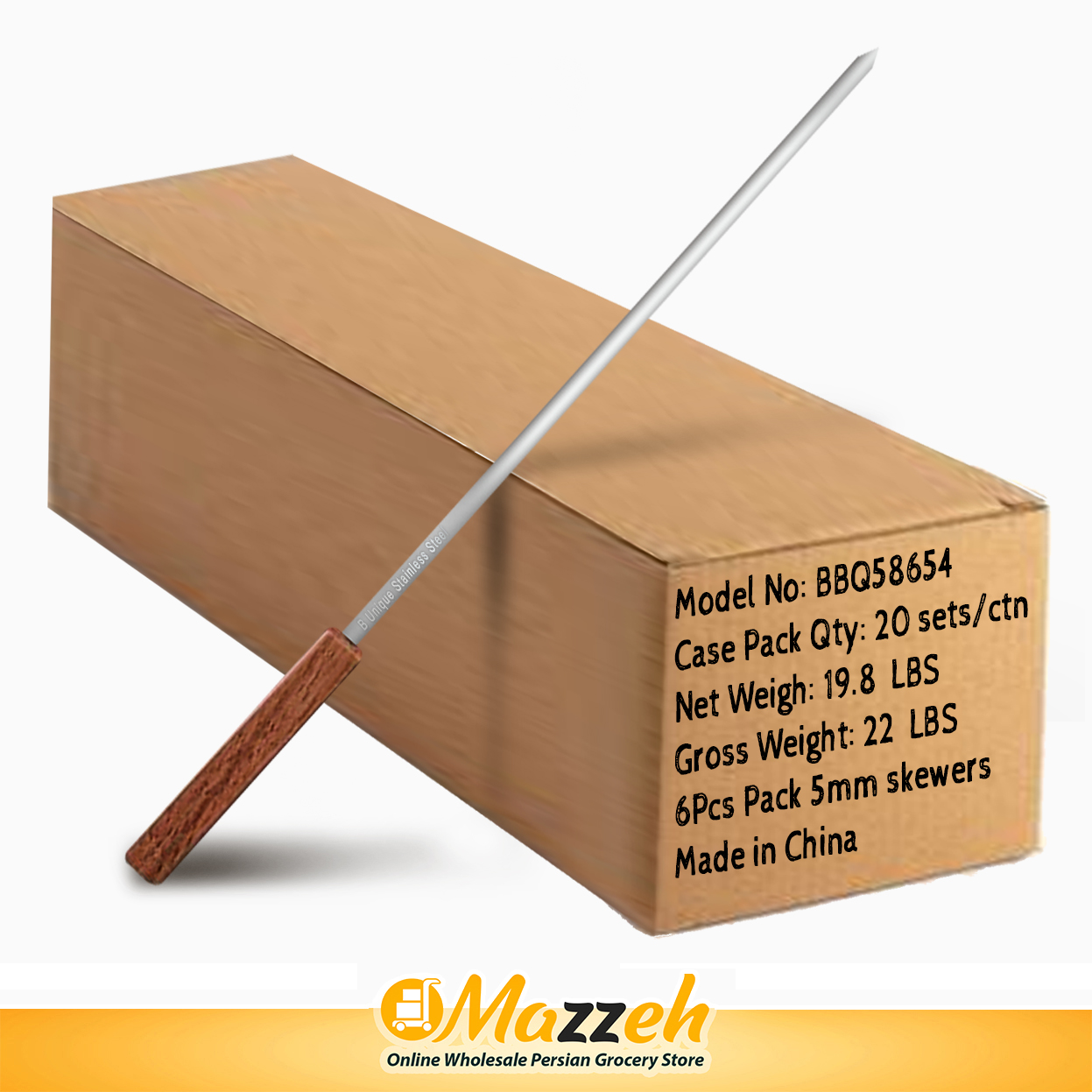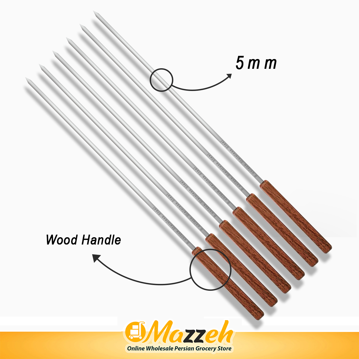 سیخ جوجه کباب تمام استیل دسته چوبی بی یونیک ست 6 تایی- بسته 20 تایی