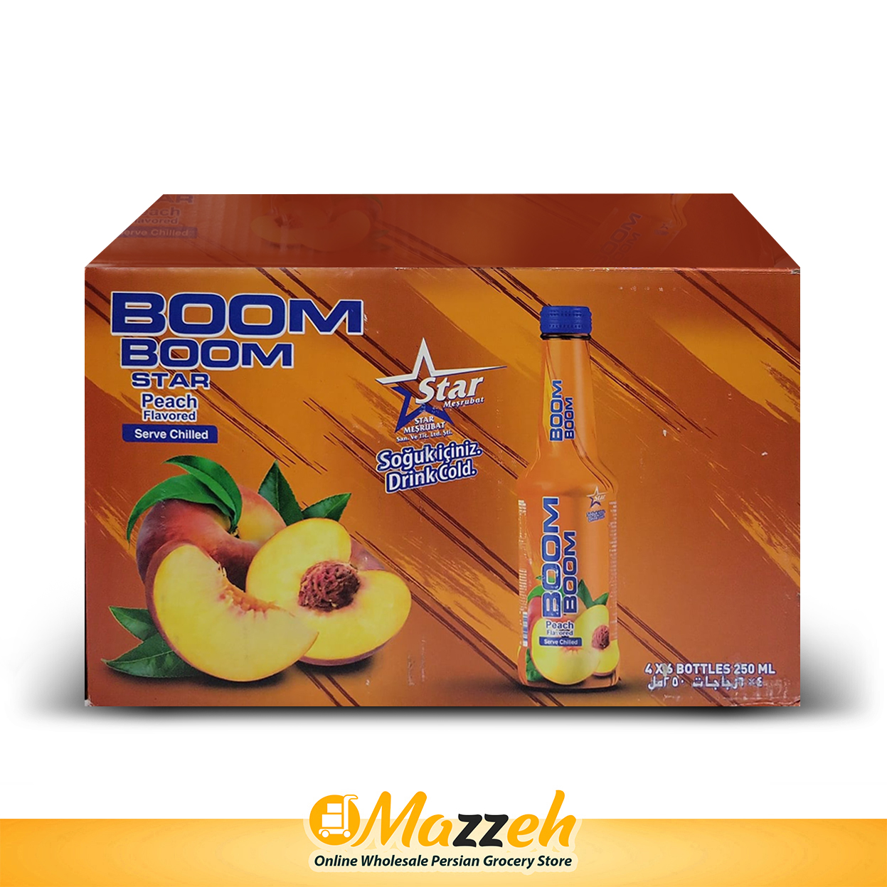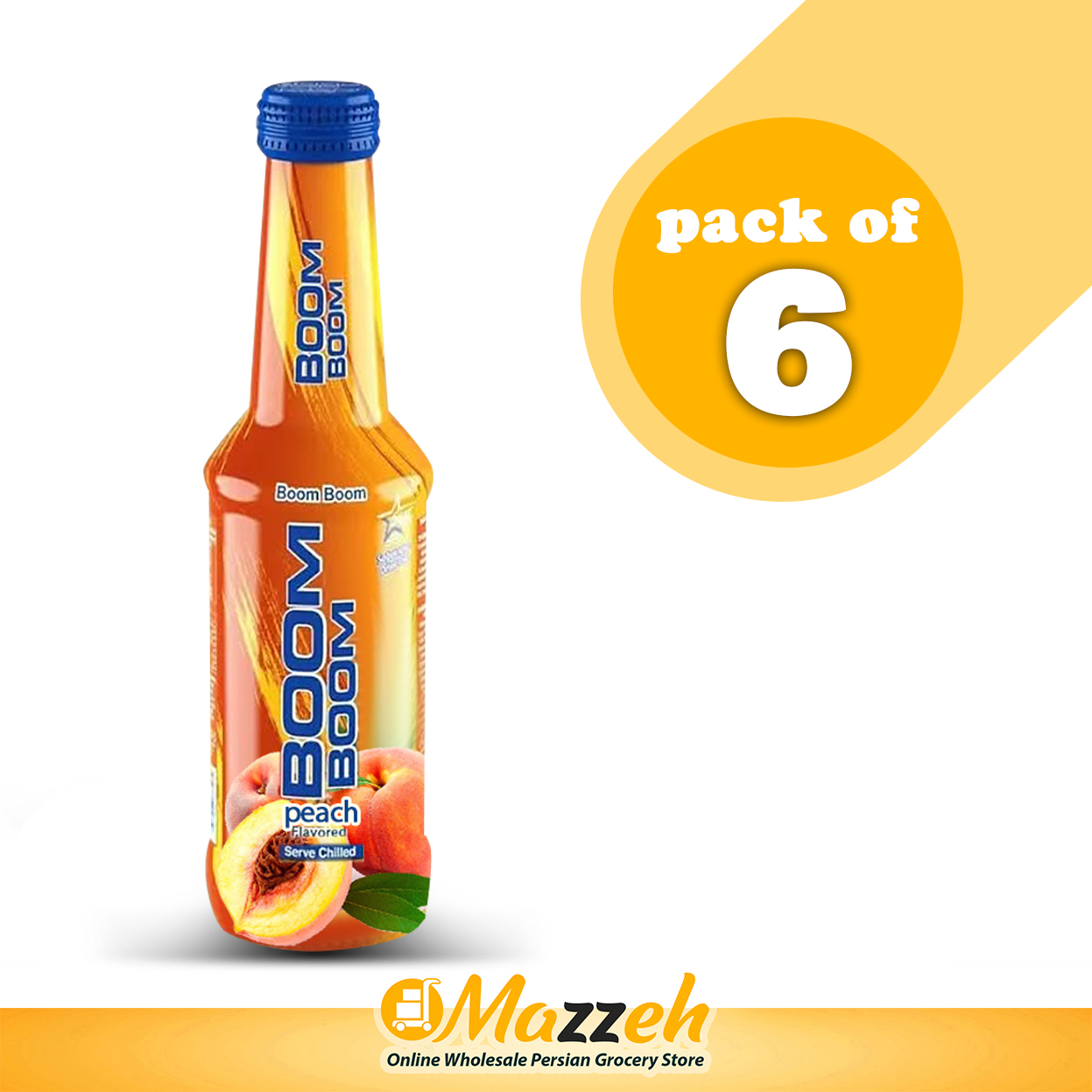 نوشیدنی گازدار با طعم هلو بوم بوم استار 250 میلی لیتر (8.5 اونس) – بسته 6 عددی