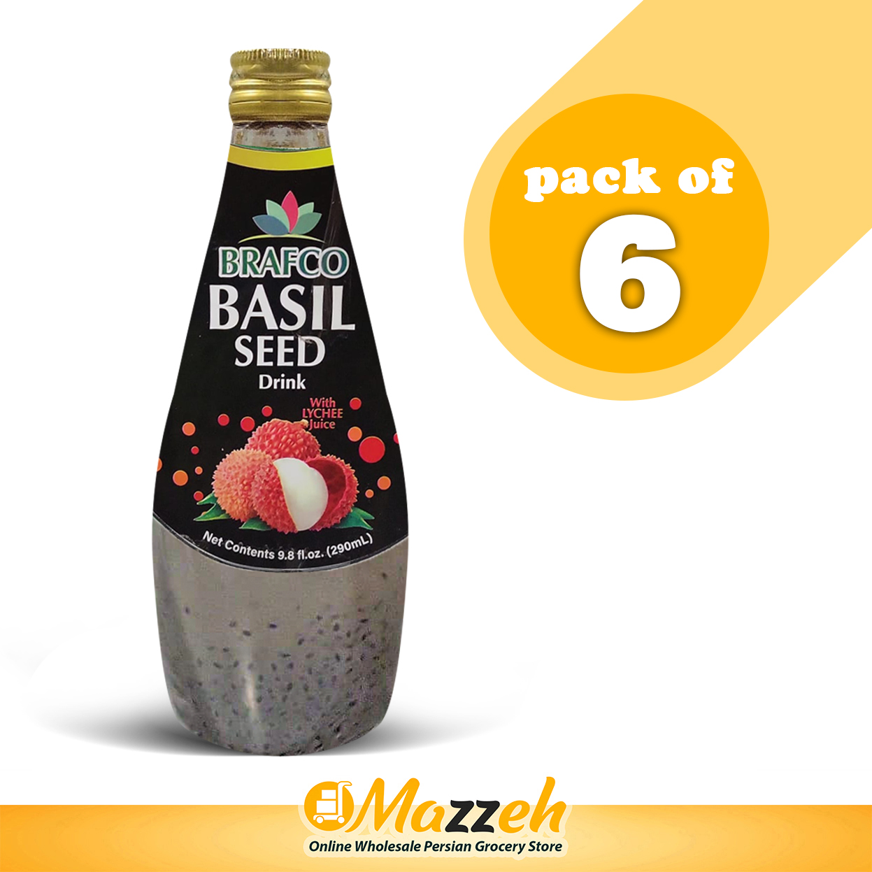 نوشیدنی دانه ریحان آب لیچی برافکو 290 میلی لیتر (9.8 اونس) – بسته 6 عددی
