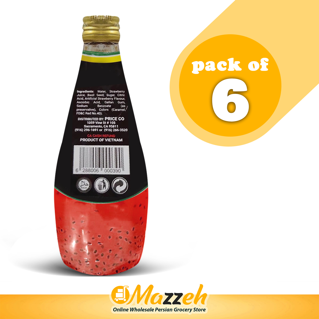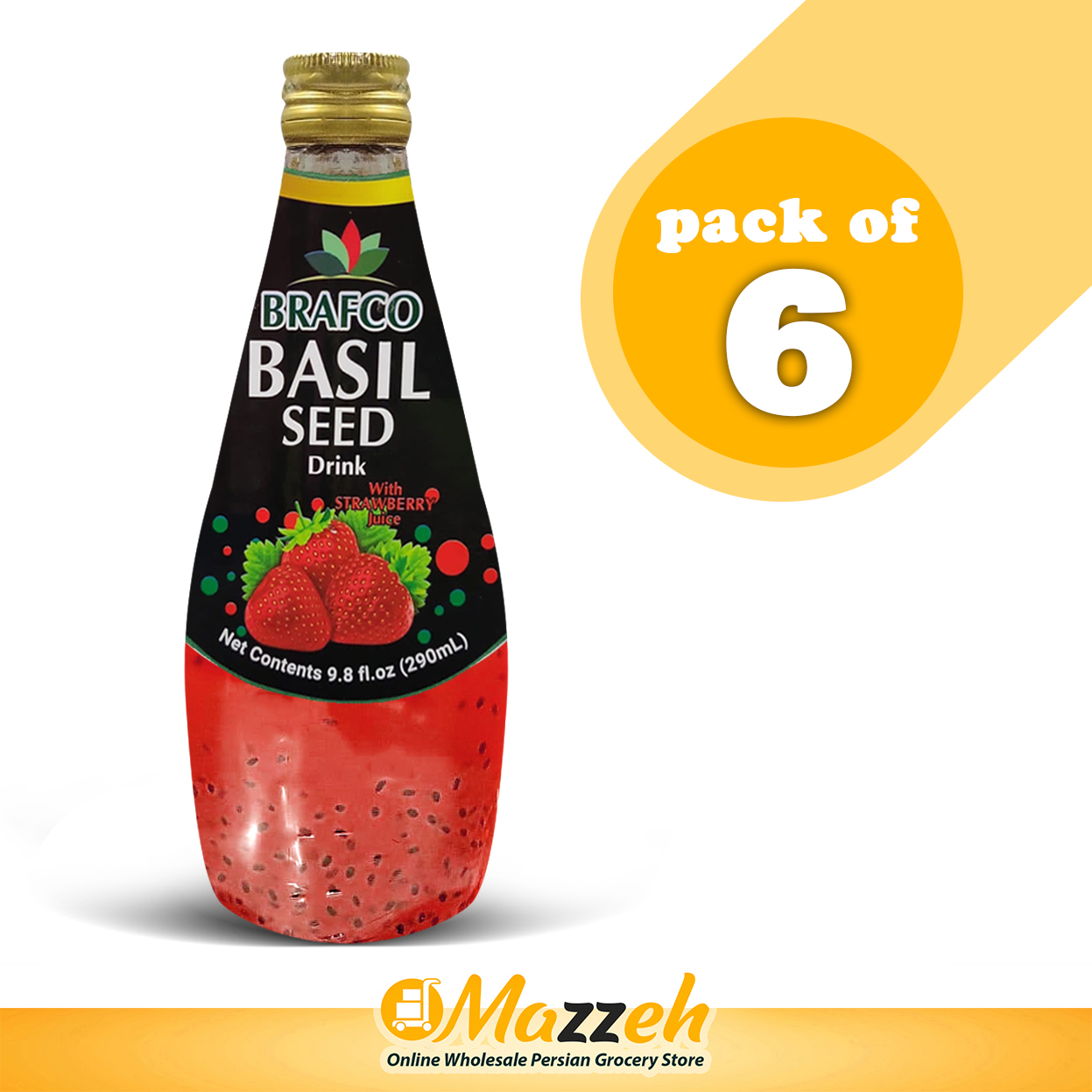 نوشیدنی دانه ریحان توت فرنگی برافکو 290 میلی لیتر (9.8 اونس) – بسته 6 عددی