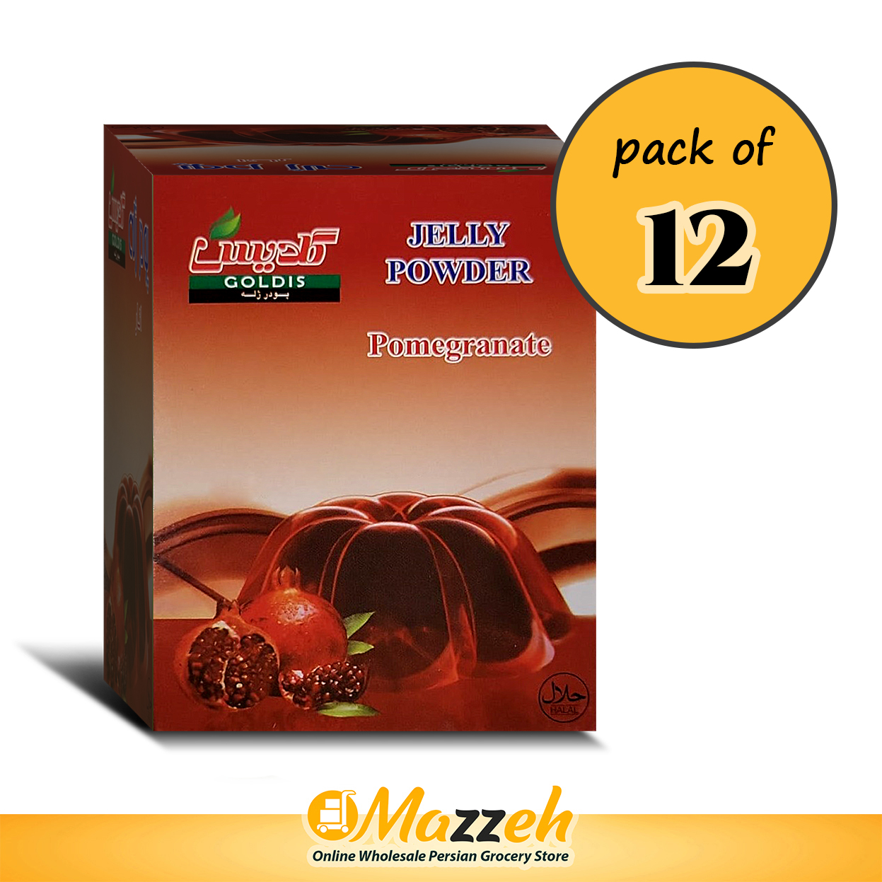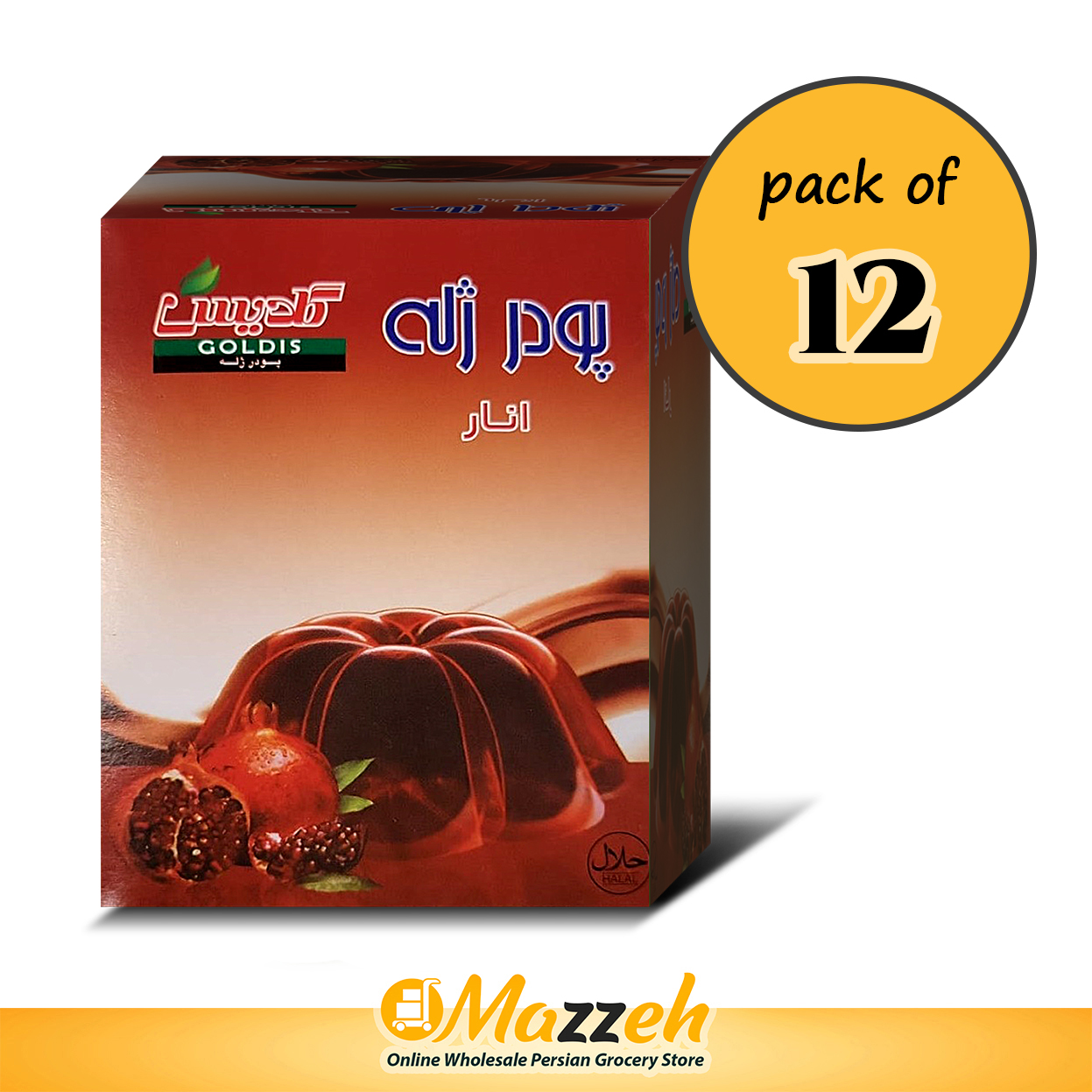 پودر ژله انار حلال گلدیس 3،5 اونسی 100 گرمی،بسته 12 تایی