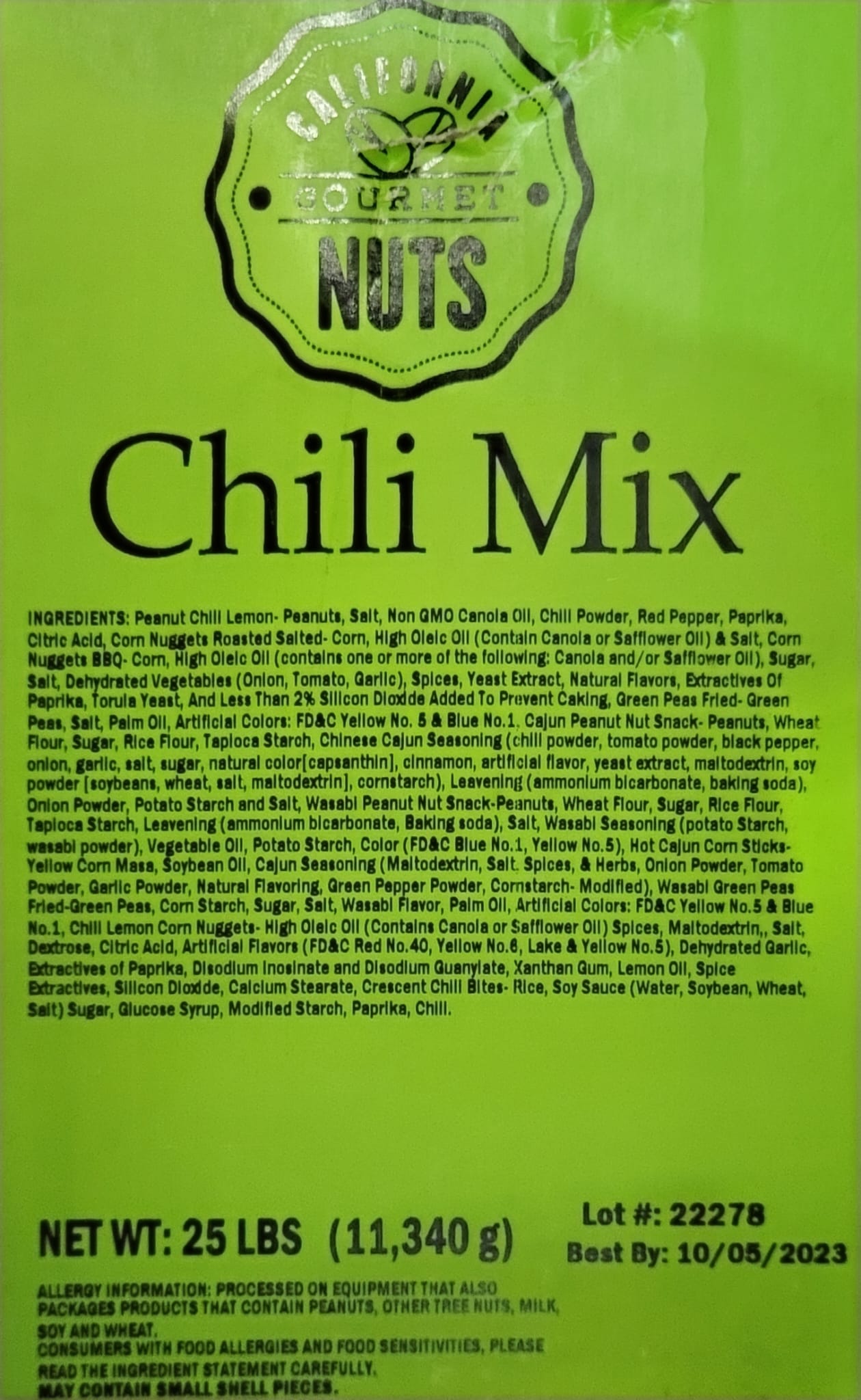 INGREDIENTS: Peanut Chll Lemon- Peanuts, Salt, Non-QMO Canola Oll, Chil Powder, Red Pepper, Paprika, Cltrle Acid, Corn Nugrete Roasted salted- Corn, HIgh Olelc 0ll (Contaln Canola or Saflower 0il) a Salt, Corn.