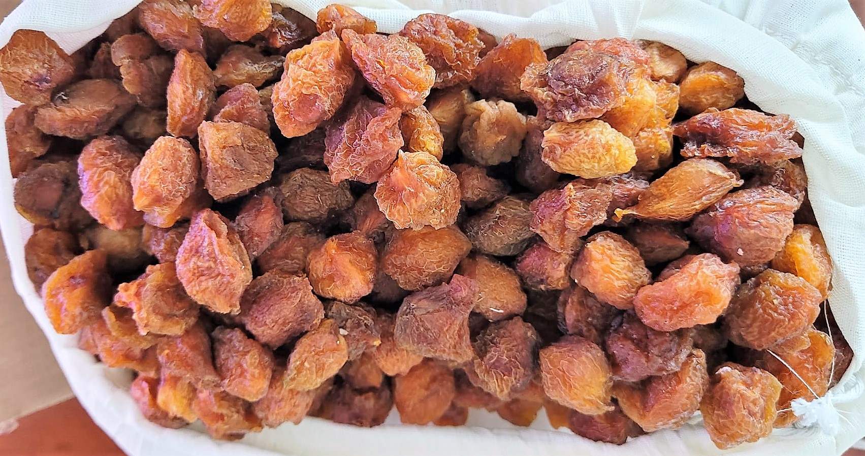 To prepare it, first plum gold drops are boiled in water and after the skin dries, it is removed and left in the sun to dry.
