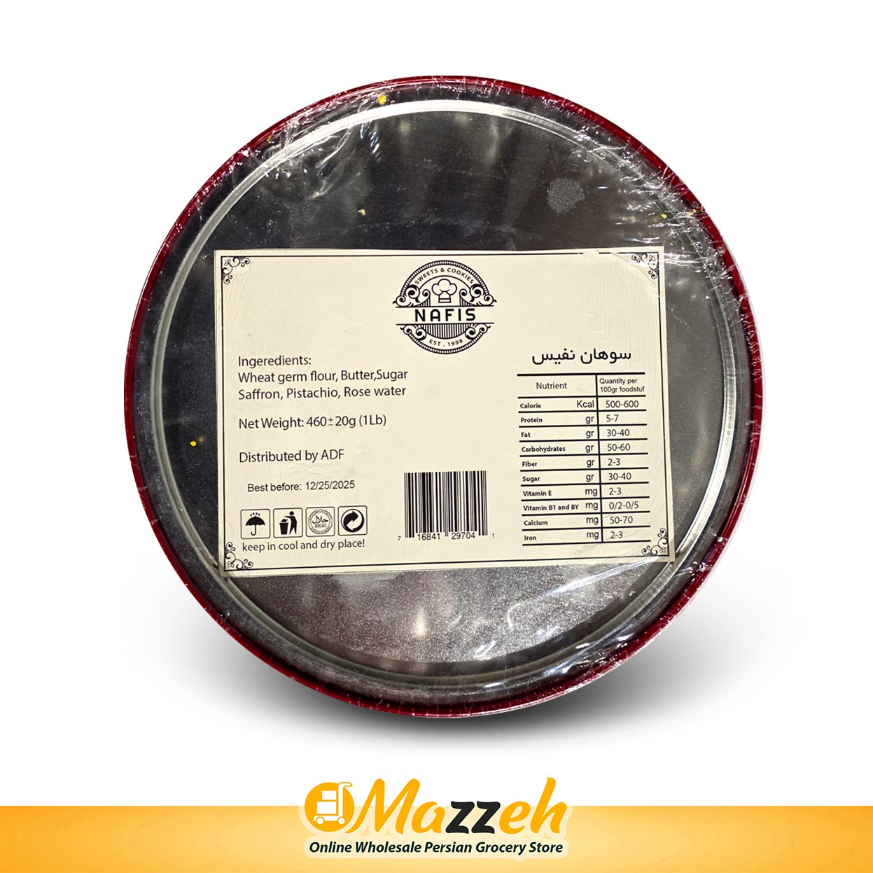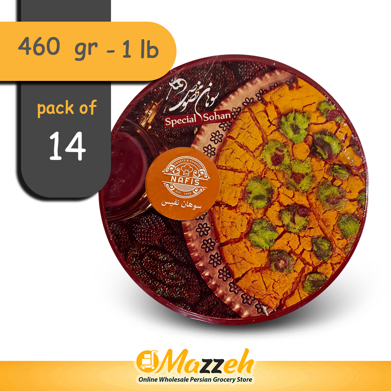 Sohan is a traditional Persian saffron brittle toffee made in Iran. Its ingredients consist of wheat sprout, flour, egg yolks, rose water, sugar, butter or vegetable oil, saffron, cardamom, and slivers of almond and pistachio.