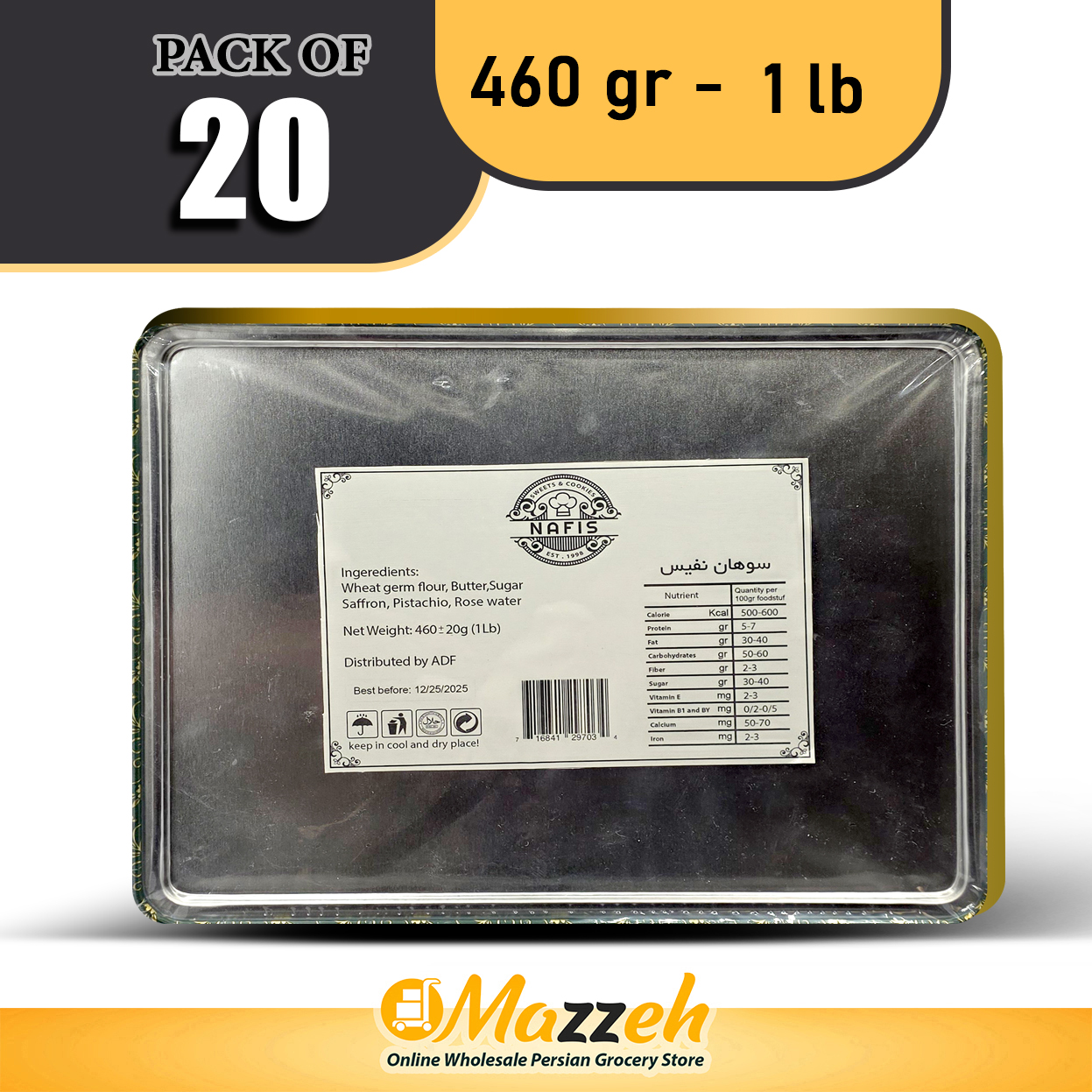 سوهان لقمه پرپسته نفیس 456 گرمی 1 پوندی، بسته 20 تایی