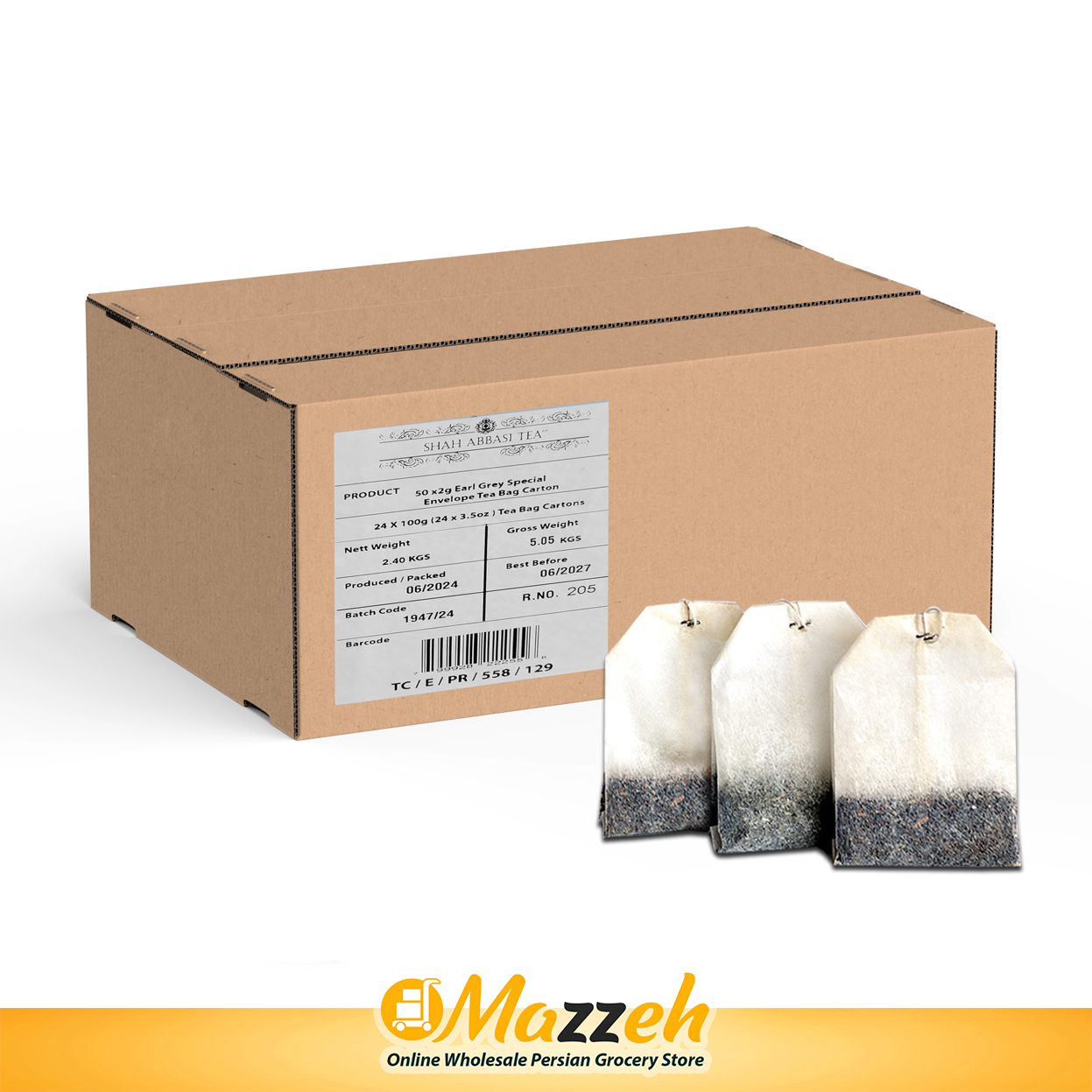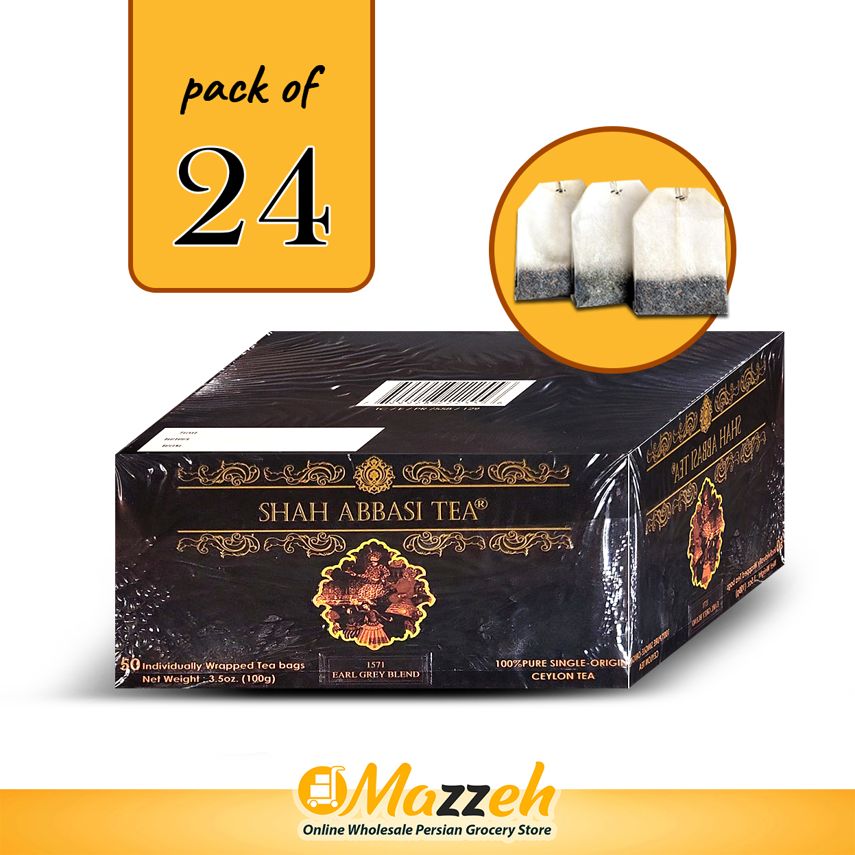 چای سیاه ارل گری ممتاز کیسه ای شاه عباسی 50 عددی 2 گرمی، کارتن 24 تایی