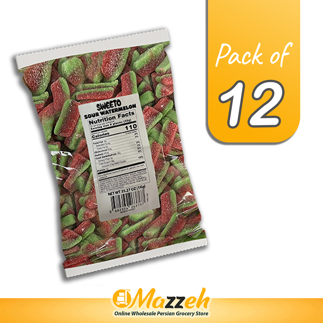 پاستیل هندوانه ایی ترش سویتو 12 بسته 1 کیلویی، کارتن 26.45 پوندی 12 کیلویی