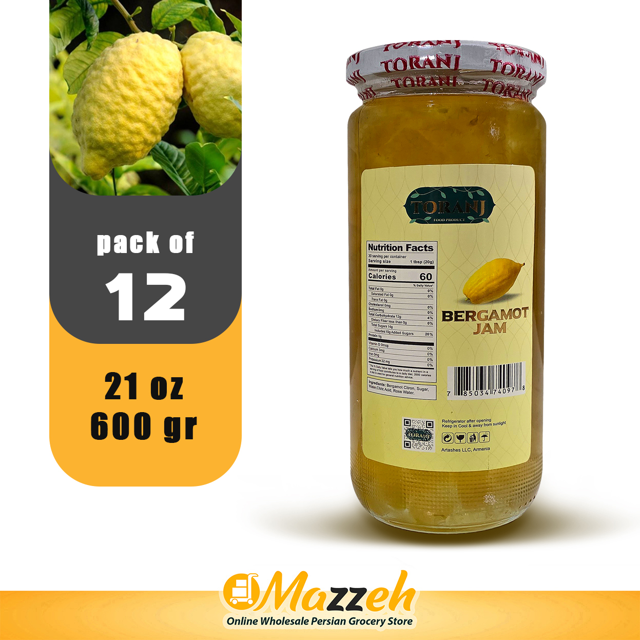مربا بالنگ ترنج 21 اونسی 600 گرمی, بسته 12 تایی