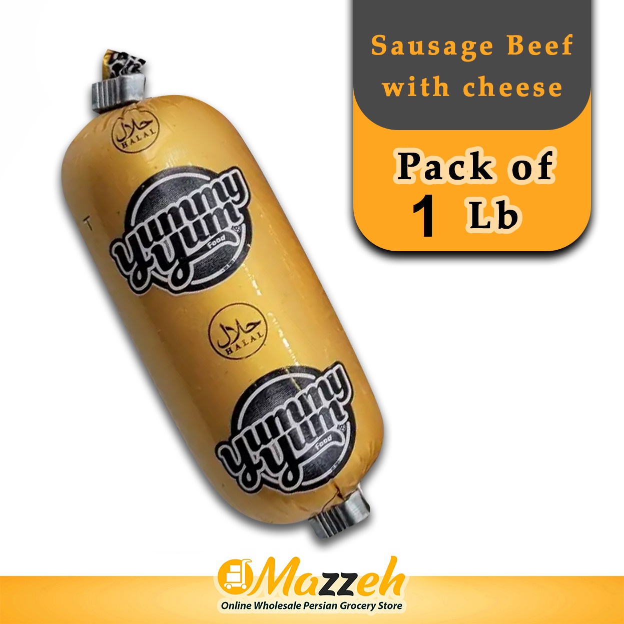 YummyYum-Sausage Beef with cheese-Halal- Pack of 1 Lb
